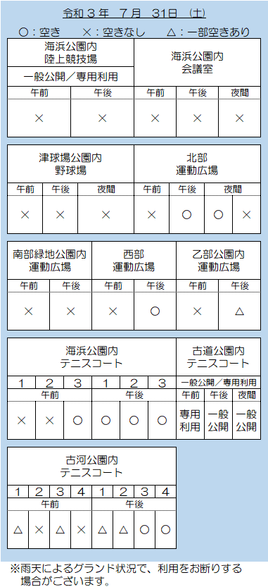 津市運動施設 空き状況 7.31